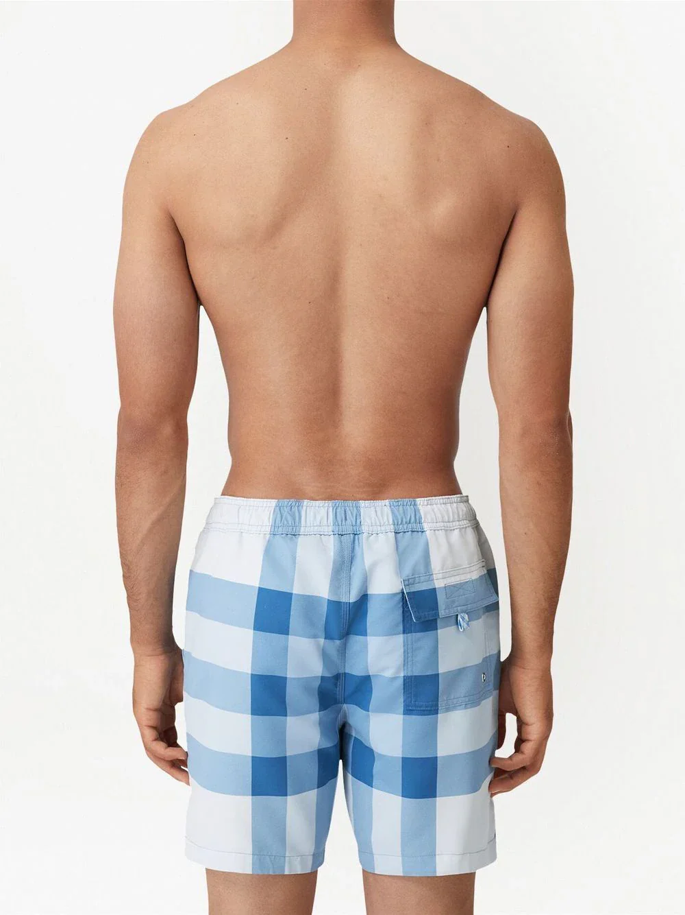 Burberry's classic signature check, now used in many different iterations, the design is featured in a large scale and blue colourway on this pair of swim shorts which a must have for your summer collection.
