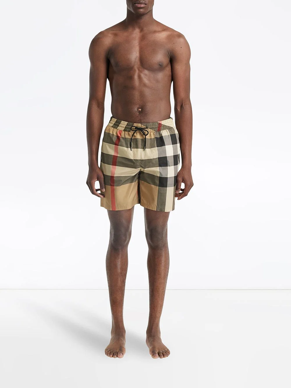 A quintessentially British brand, Burberry creates iconic designs that seamlessly infuse their rich heritage with a contemporary aesthetic. These swim shorts have an elasticated drawstring waist and an all-over check pattern.