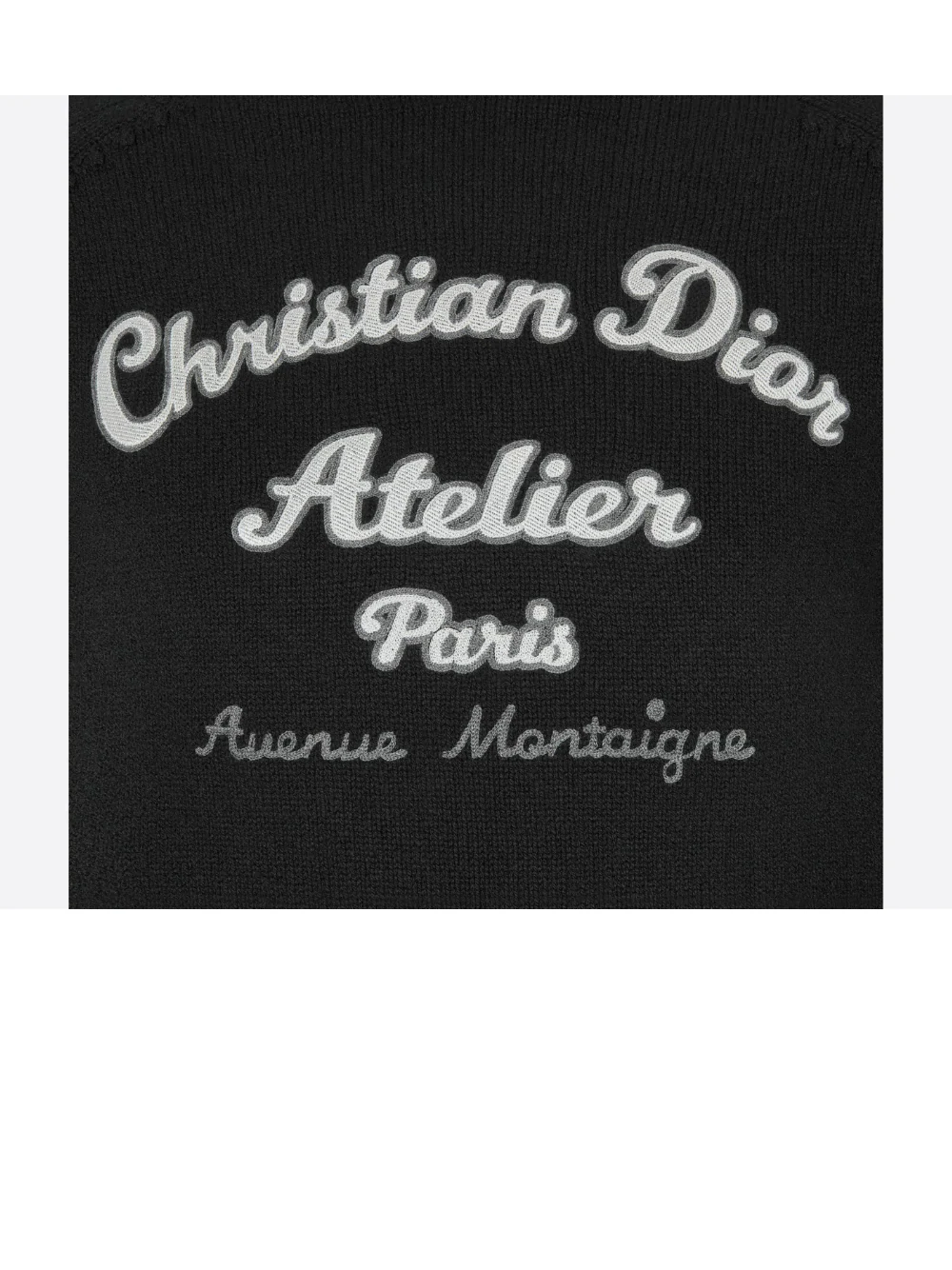 Crafted inĀ black wool jersey, it is embellished with a 'Christian Dior Atelier' embroidery on the front and contrasting striped cuffs and hem. The wool sweater, with its regular fit and ribbed detailing, can easily be coordinated with jeans for a luxury addition.