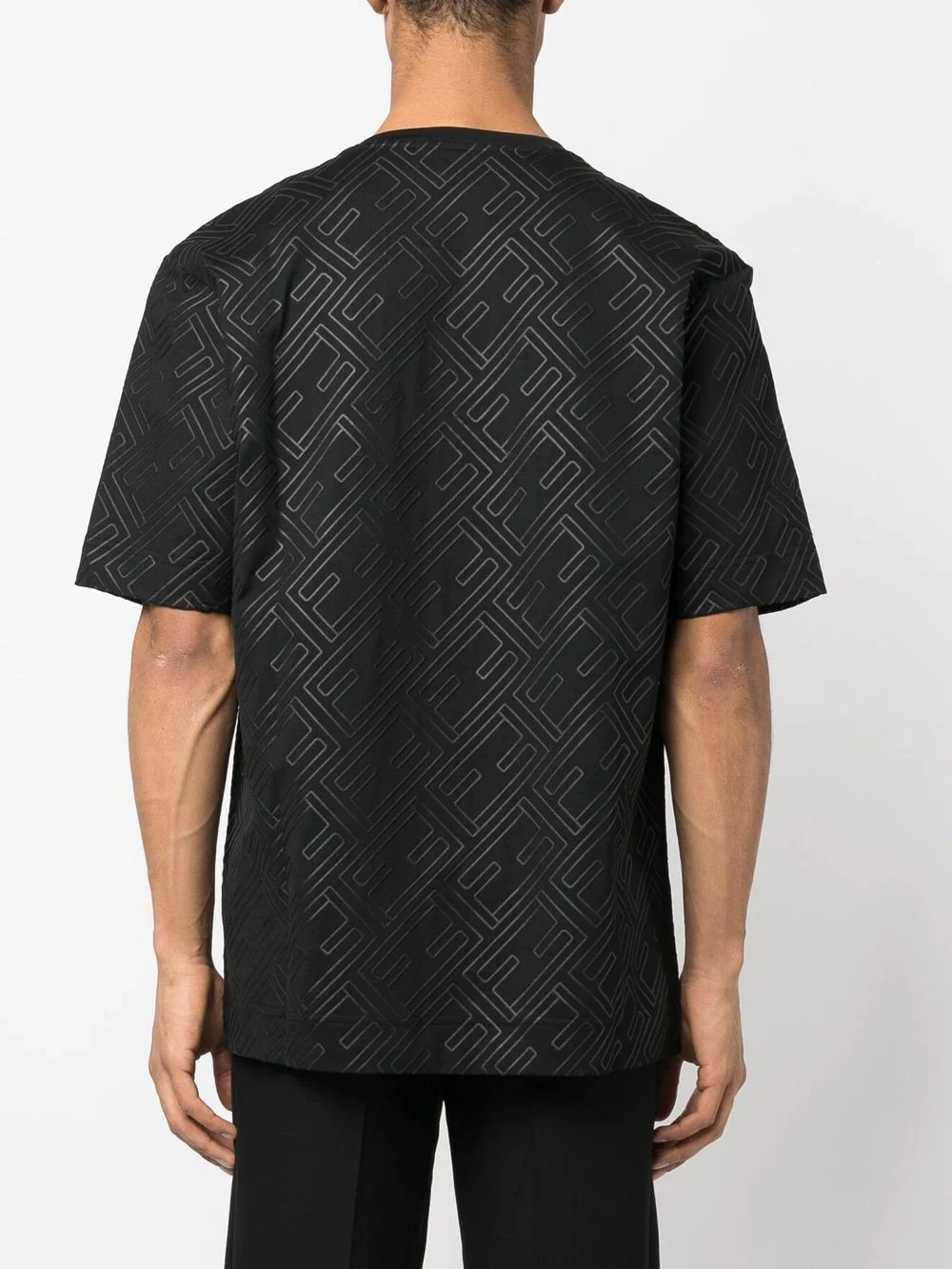 This Fendi T-Shirt features artisanal Italian craftsmanship, it is short-sleeved, crew-neck and has an oversized fit. Made with black cotton piqué. Decorated with tone on tone rubberized FF motif.